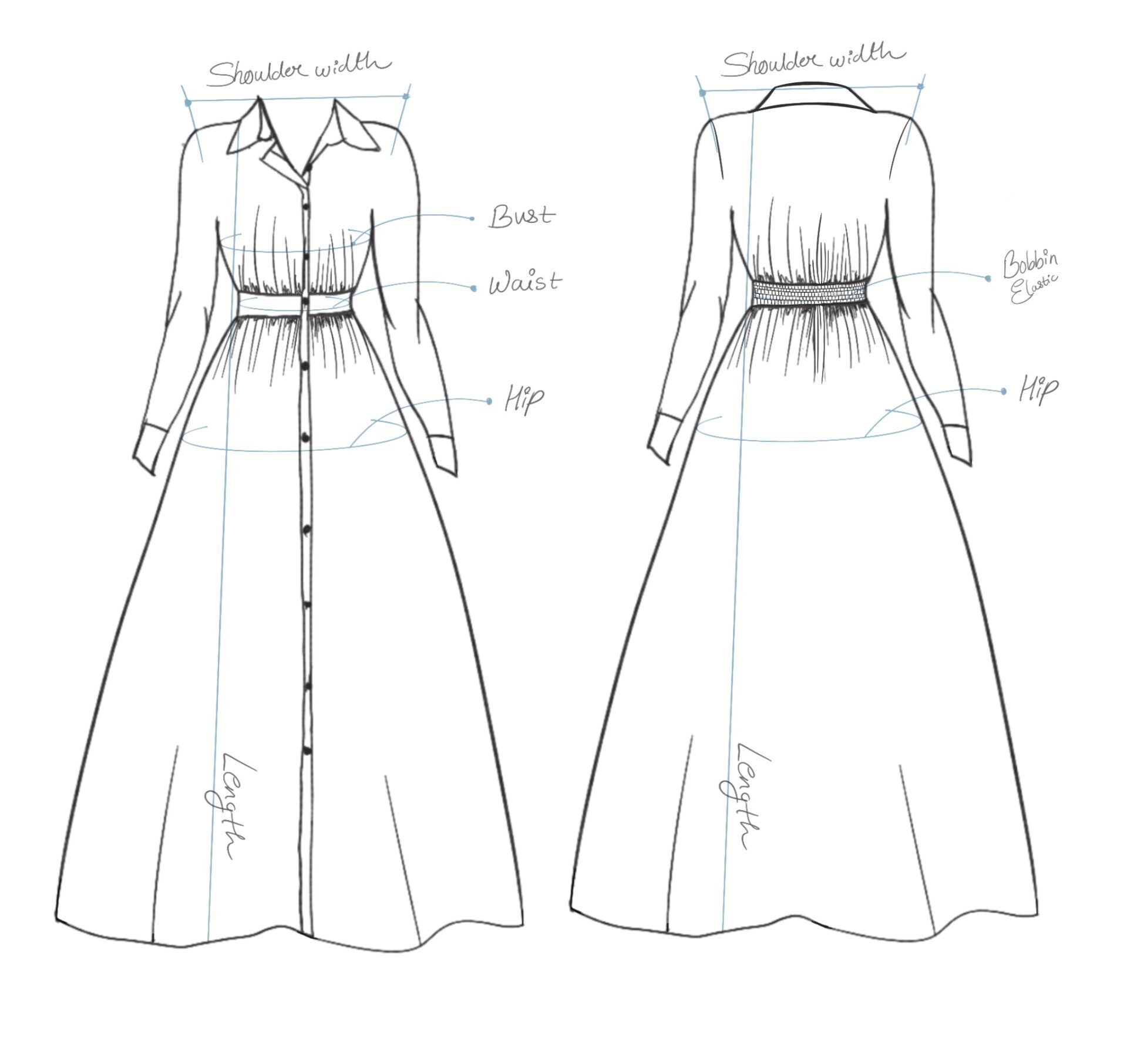 Soft structure, effortless grace. The Aara Shirt Dress features a classic shirt silhouette with full sleeves, cuffed details, and a neat button-down front. A fixed waistband at the front gives gentle shape, while the back is smocked with shirred elastic for flexible comfort. Slightly A-line with pockets on both sides, it’s the kind of everyday piece that does it all — quietly and beautifully.