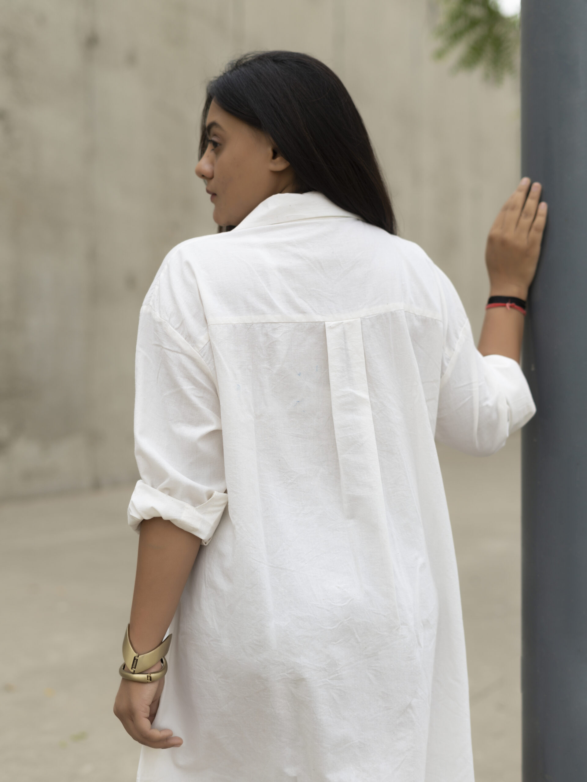 The Aria Shirt Dress is a relaxed silhouette crafted in breathable cotton, designed to flow with your day. A single front pocket adds subtle utility, while a soft pleat and back yoke bring quiet structure to the back. With its easy fit and thoughtful tailoring, this dress blends simplicity with movement-perfect for slow mornings, soft afternoons, and everything in between.