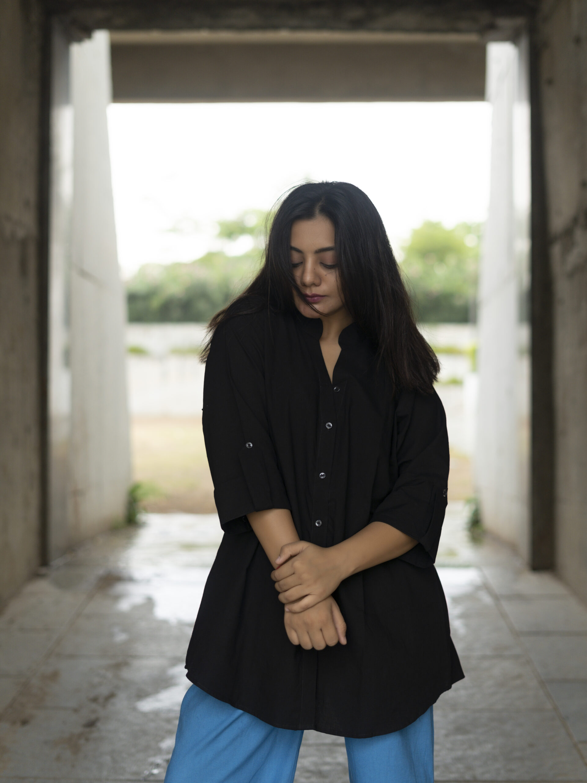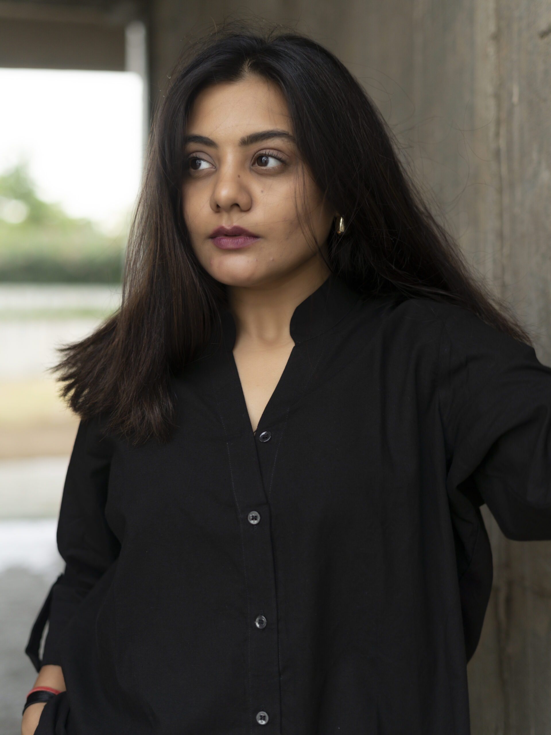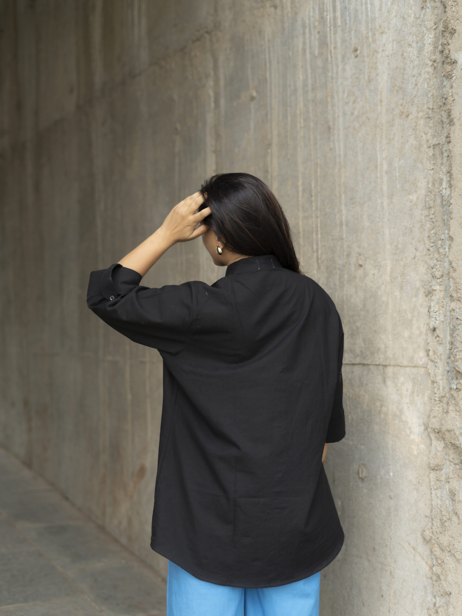 The Neel shirt balances crisp structure with gentle flow — featuring a sharp Chinese collar, soft pleat at the back, and three-quarter length sleeves that lend ease to its tailored form. It’s a piece that moves with you, offering quiet confidence in every detail.